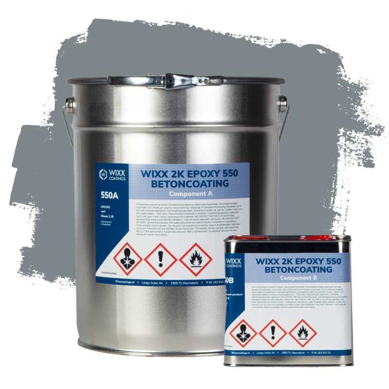 Wixx 2k Epoxy 550 betoncoating is een A-kwaliteit 2 componenten oplosmiddelhoudende betoncoating die geschikt is voor mechanische en chemische werkzaamheden.